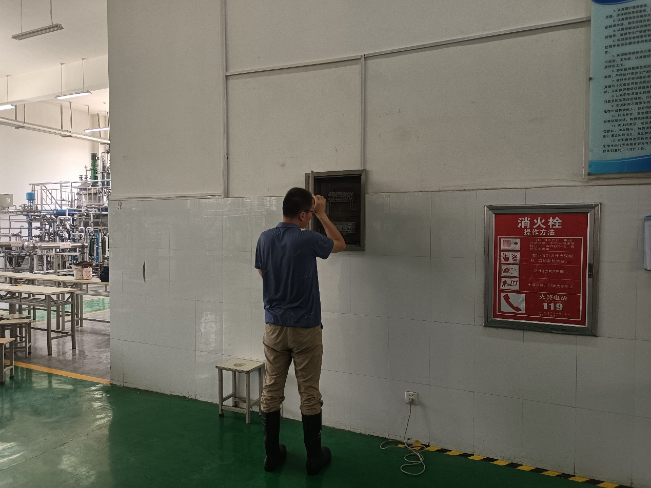 因星空XK体育化工综合实训中心位于2号实训类负一层,比校园的水平面低,且实训室内实训设备都是380V的动力电。演练模拟情景是:雨水顺着卷闸门和实训室墙体伸缩缝处流入室内,人员盲目进入实训室工作(如排涝),容易造成触电事故。