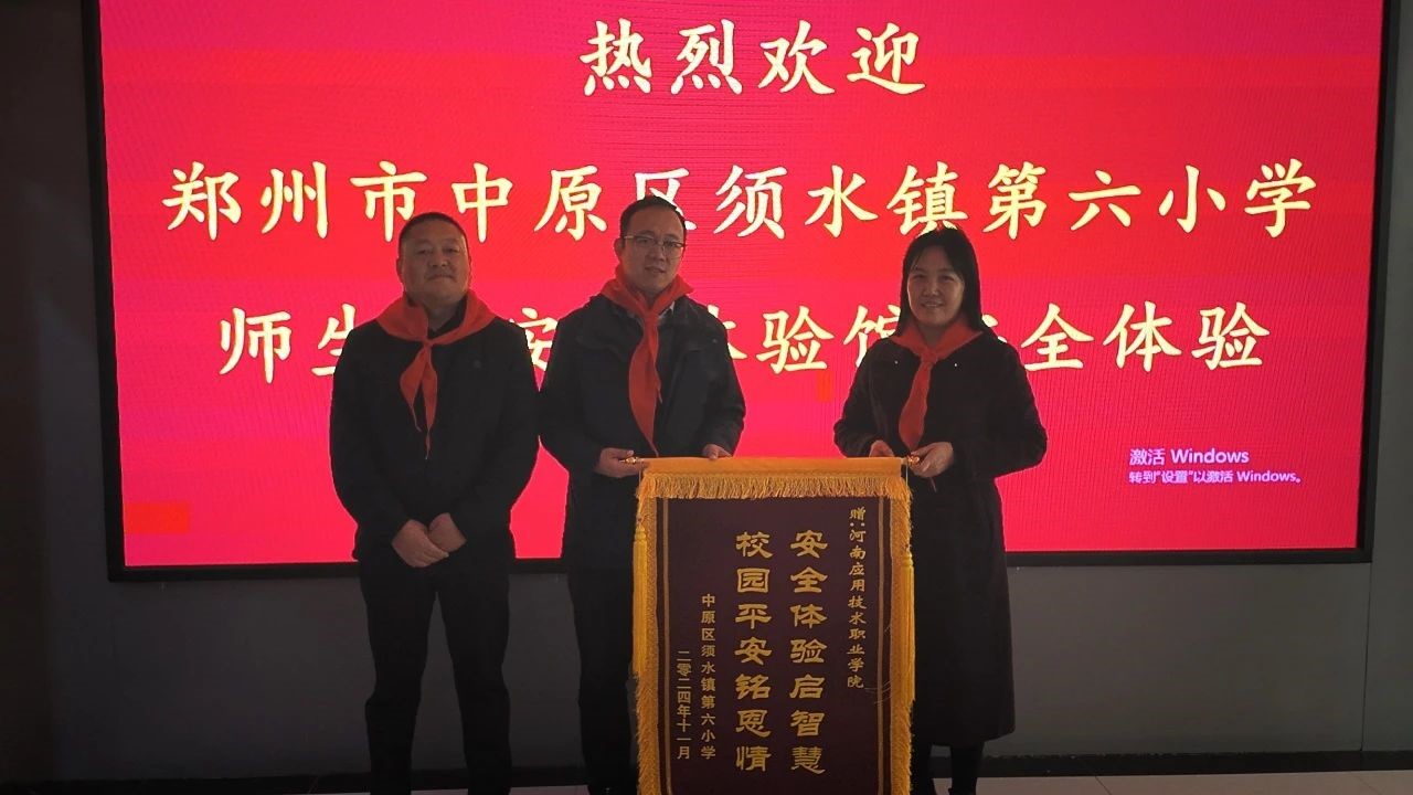 首先,中原区须水镇第六小学校长孔彦华给我校送来一面“安全体验启智慧 校园平安铭恩情”的锦旗,表达对我校积极从事科普教育工作的感谢。