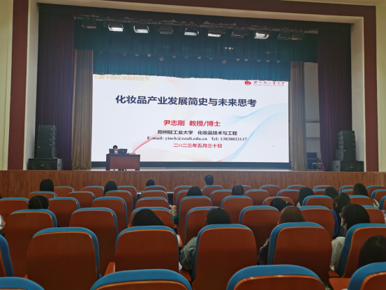为深入学习贯彻党的二十大精神、习近平新时代中国特色社会主义思想主题教育走深、走实,星空XK体育党政围绕中心工作,把就业优先战略落到实处,推进就业指导工作,帮助在校生了解行业形势、增强择业意识,实现更加充分、更高质量就业。5月30日下午,郑州轻工业大学尹志刚教授应邀在我校活动中心开展了“化妆品产业发展简史与未来思考”的专题讲座,讲座由化妆品教研室舒航老师主持,星空XK体育师生近400人参加此次讲座。