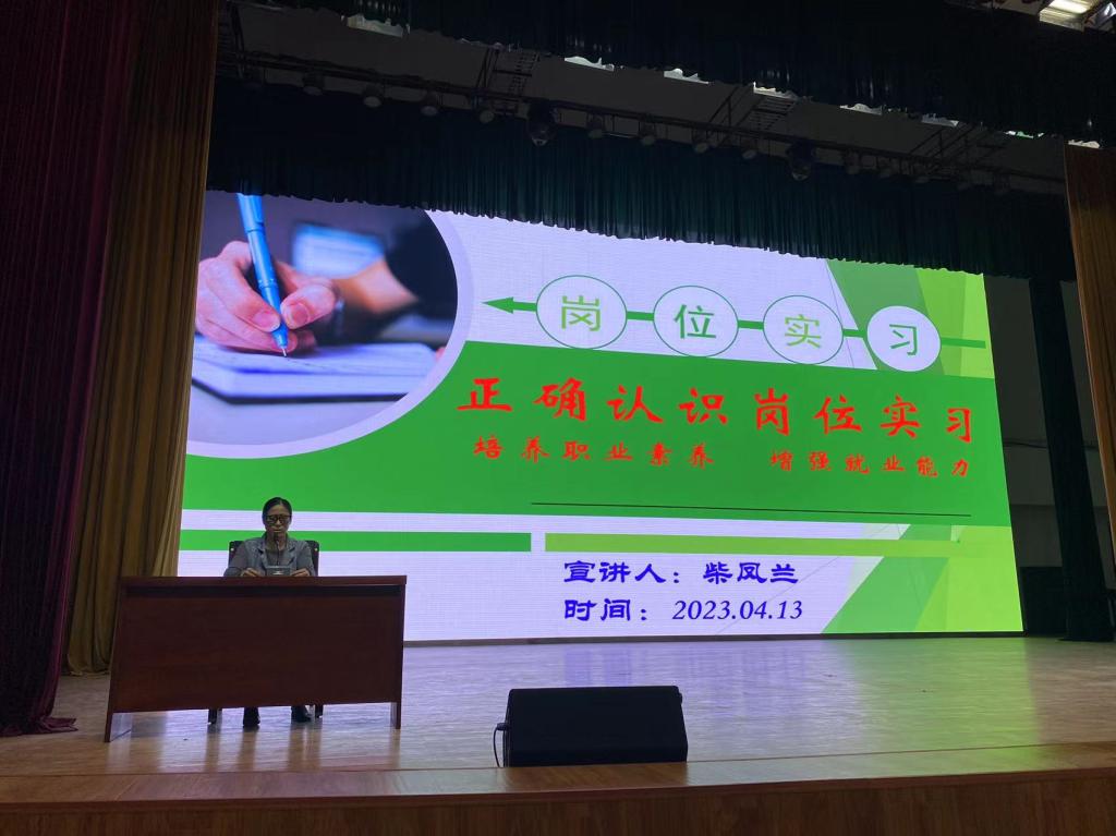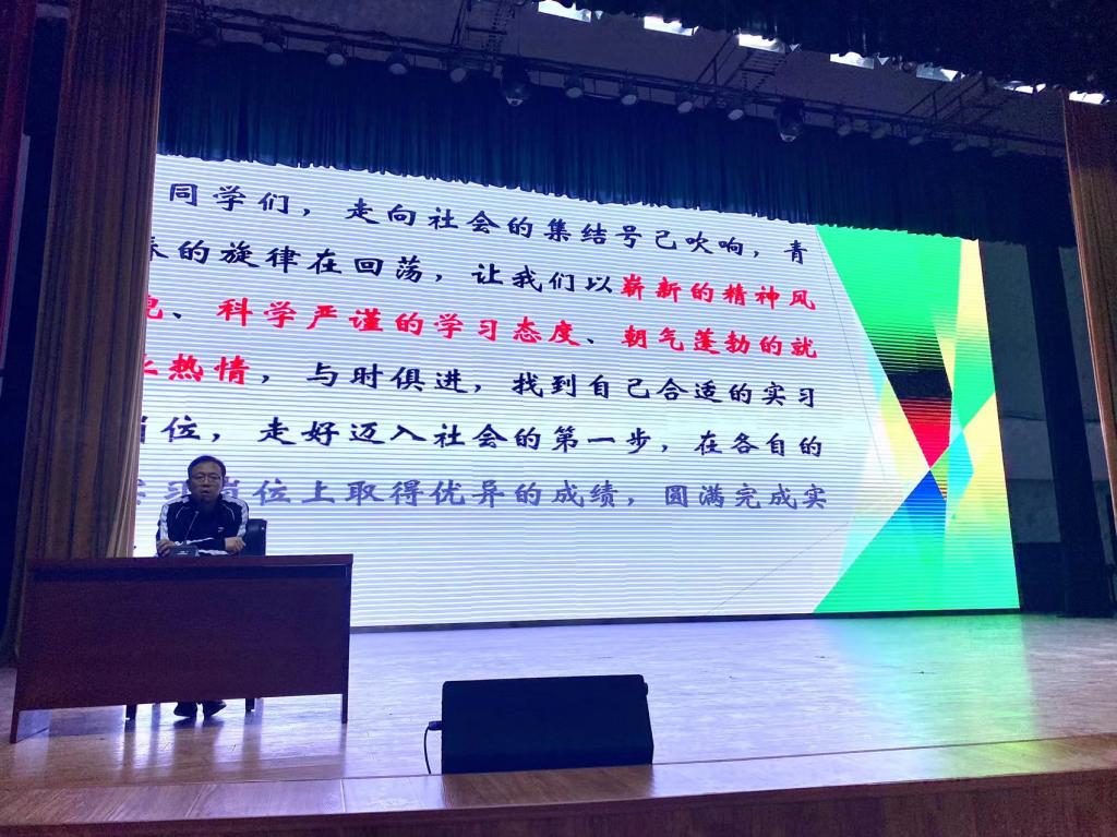 朱冰岗位实习做了全方位动员。对学生实习工作进行经验分享,鼓励同学们树立正确的择业观,先就业后择业,提高社会心理承受力,积极进取,同时也让同学们认识到职业教育前途广阔,大有可为。