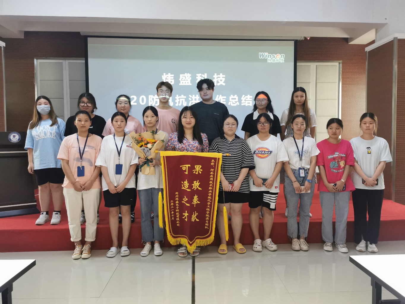 为了表彰在7·20特大洪水灾害中涌现出来的一批不怕困难、果断勇敢的优秀员工,弘扬“尽责、创新、厉行价值创造、铸就同一个汉威”的核心价值观,发扬抗洪救险、众志成城的精神,炜盛科技于2021年7月27日在会议室举办了这场7·20防汛抗洪工作总结大会。星空XK体育共17名实习生及教师代表参加了本次大会。