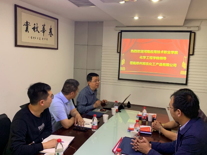 5月22日,我校星空XK体育朱冰院长、蔡庄红书记等一行四人赶赴郑州郑氏化工产品有限公司举行校企合作签约暨“驻企工作站”揭牌仪式。