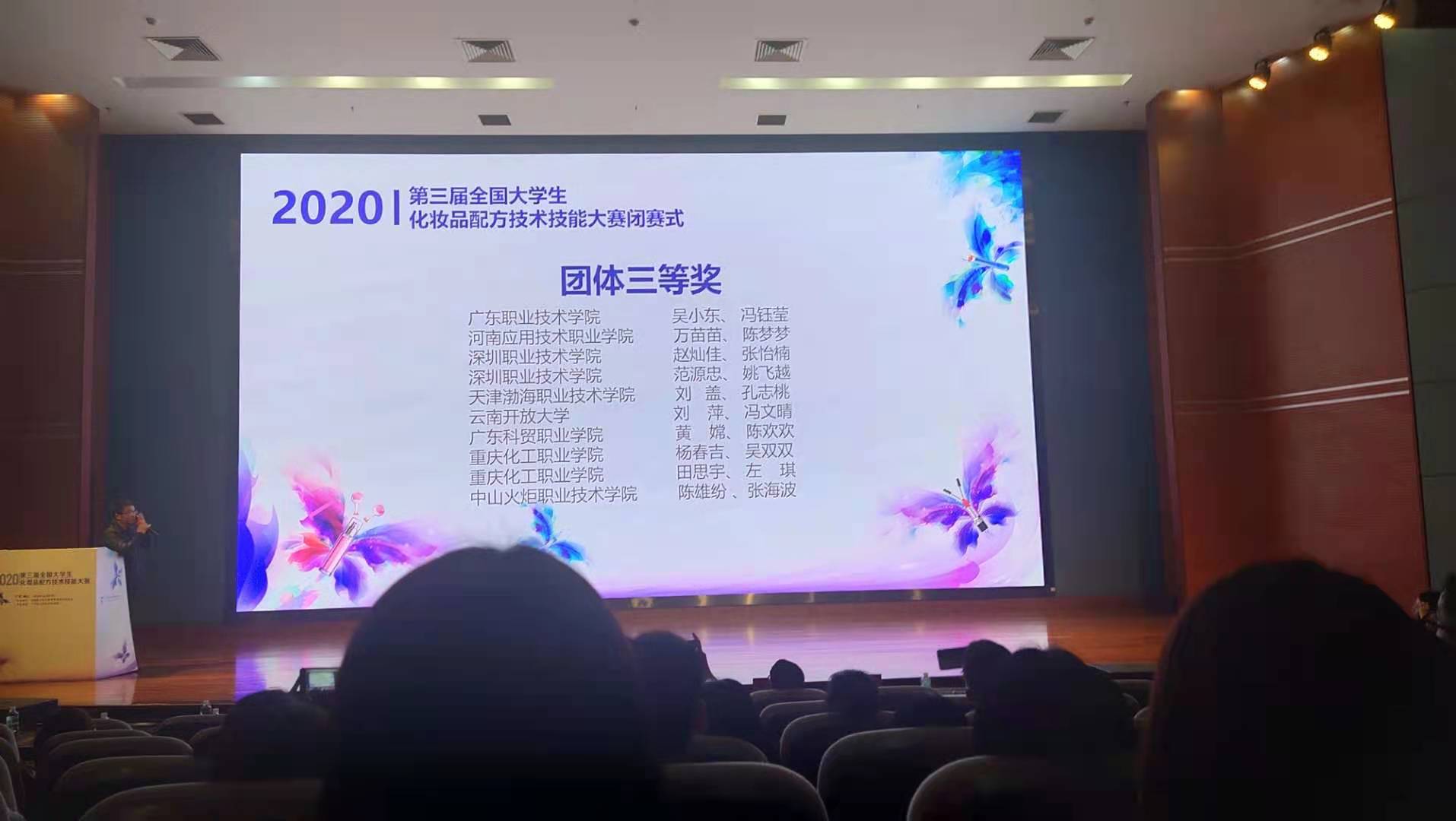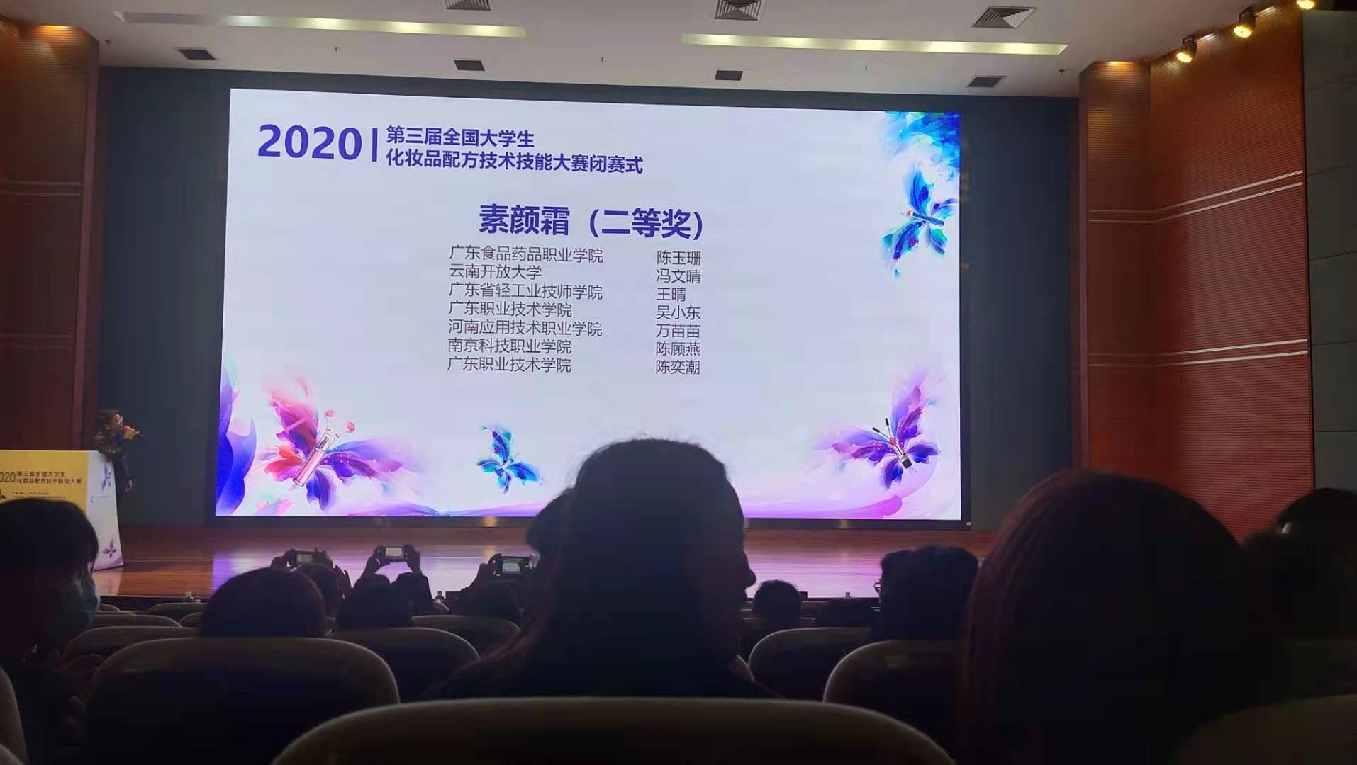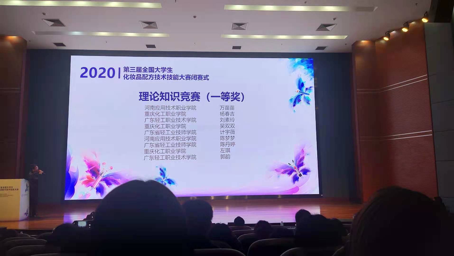热烈祝贺我校星空XK体育19级化妆品经营与管理专业万苗苗、陈梦梦两位同学在2020年第三届全国大学生化妆品配方技术技能大赛中分别荣获个人理论知识竞赛一等奖,素颜霜实操项目个人二等奖,团体三等奖的好成绩!