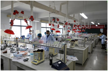 比赛期间,14名选手全神贯注、有条不紊的按照比赛要求完成反应实验装置搭建、反应物用量计算、产品分离提纯、含量分析、标准溶液标定、样品制备、标准工作曲线制作等竞赛环节。比赛全程紧张有序。此次比赛全程,选手们佩戴护目镜、耐腐蚀手套、工作服等防护装备,不仅从展示了职业院校技能训练的成果,还展示了绿色、安全、健康理念在化学、化工类职业教育中的潜移默化。