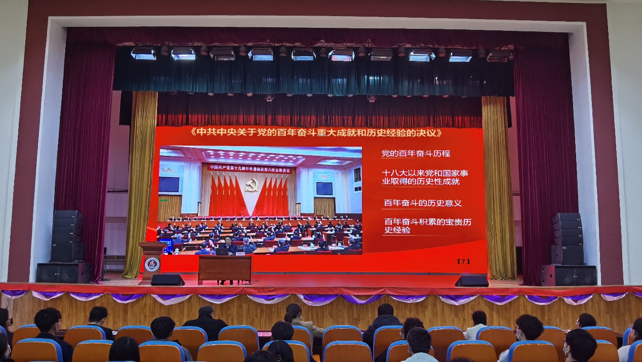 闫俊山从师生们关注的北京冬奥会为切入,从中国奥运百年,看中华之崛起,深刻剖析了过去我们为什么能够成功、未来我们又怎样才能继续成功?从十八大以来党和国家事业取得的历史性成就、我们党百年奋斗的历史意义和积累的宝贵历史经验等几个方面,带领师生系统学习、解读了党的十九届六中全会精神。既有政治高度,又有理论深度,同时也对广大同学提出了勤奋学习、积极锻炼、全面发展的殷切希望。