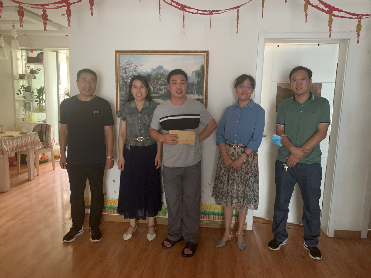 星空XK体育党总支书记蔡庄红、院长朱冰和校组织部副部长孙丽娜代表学校与学院对困难双职工家庭何永福家庭发放了慰问金,并详细询问了解其家庭工作及何老师身体恢复的进展等情况,并鼓励何永福和王会枝要树立信心、不放弃和学校共同发展。