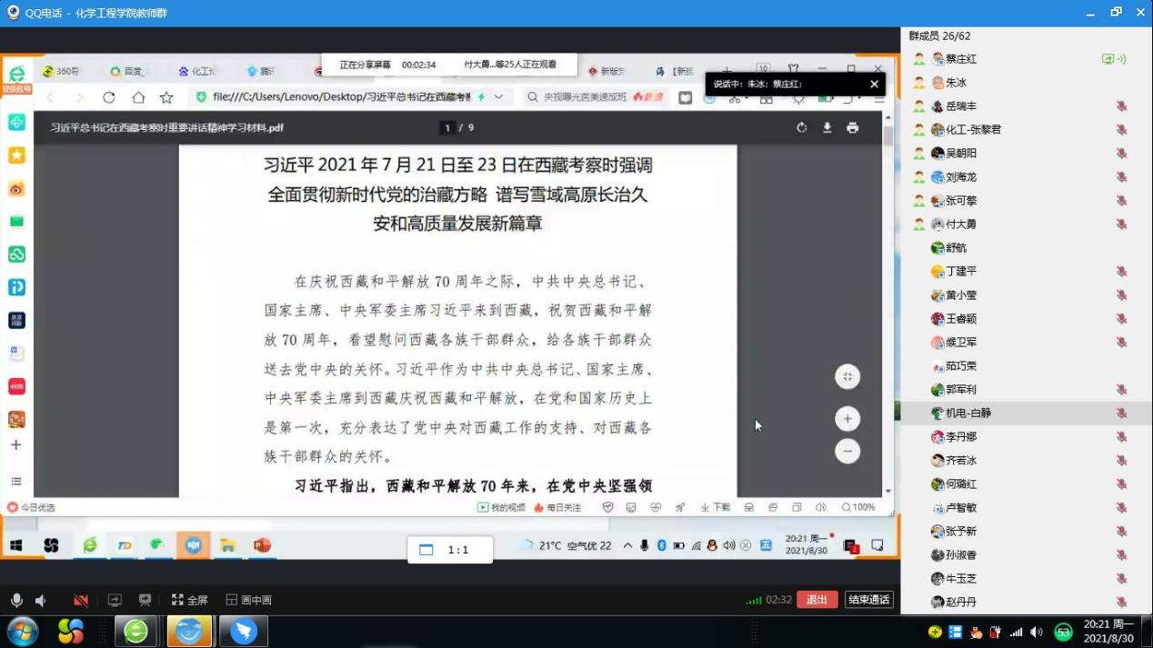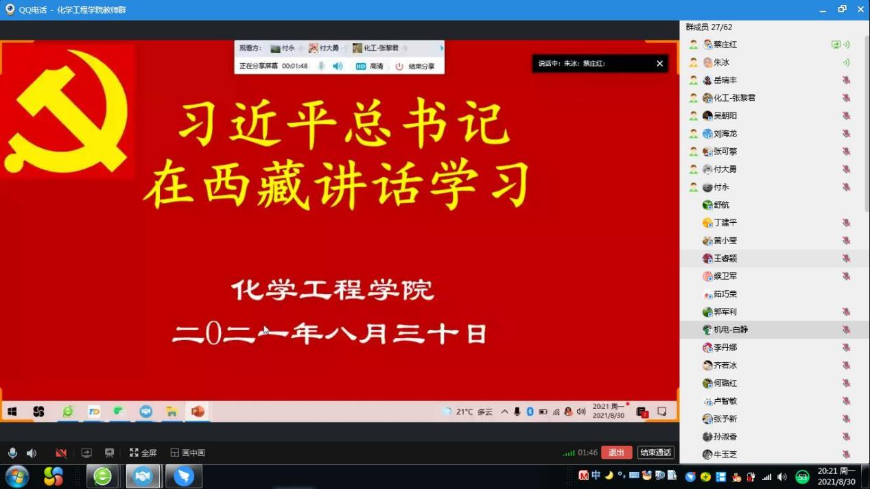 8月30日,星空XK体育党总支召开全体教师线上专题学习会,传达学习习近平总书记视察西藏时的重要讲话精神,会议由院党总支书记蔡庄红主持。
