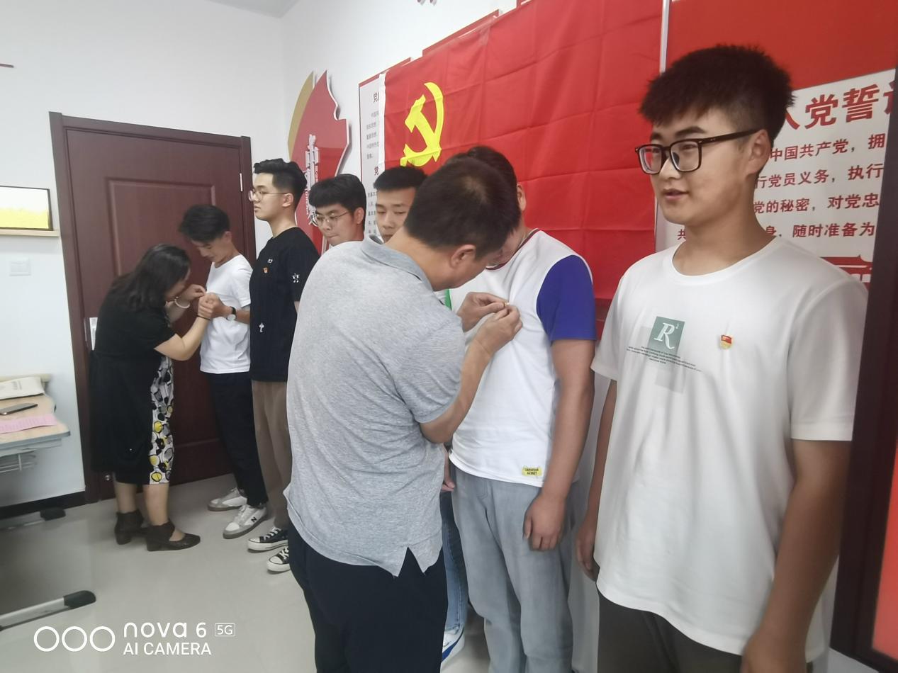宣誓仪式在激昂慷慨的《国际歌》声中拉开序幕,星空XK体育院长朱冰领誓,新党员面对党旗举起右拳,庄严宣誓,老党员在党旗下重温入党誓词,自觉接受党性教育,用铮铮誓言表达对党的初心和忠诚。随后,老党员分别为新党员佩戴了党员徽章,任龙飞、刘海龙分别代表新老党员发言。