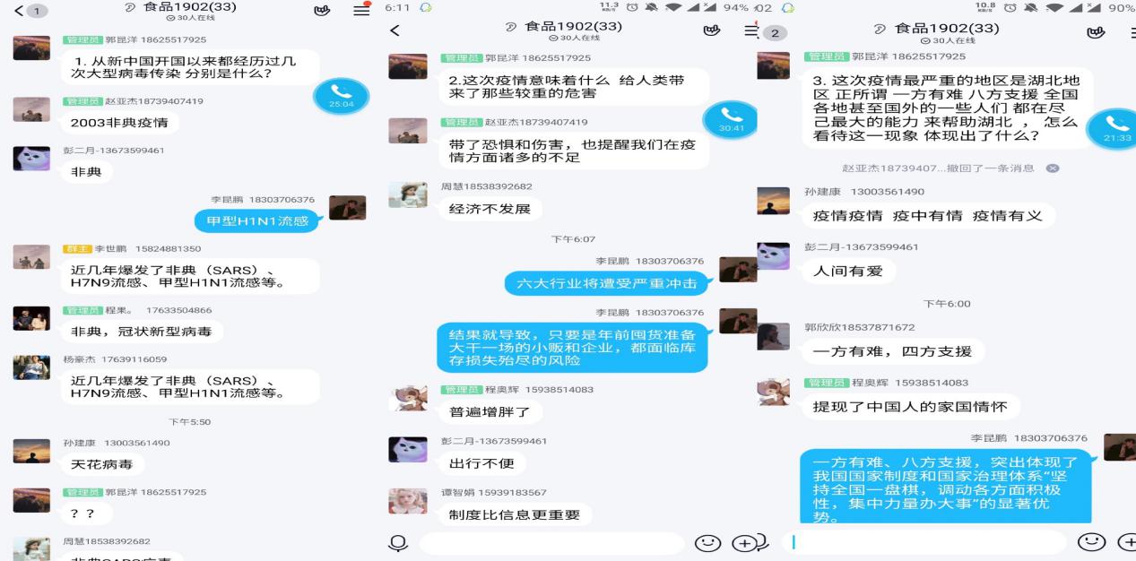 在抗击新冠肺炎疫情的关键时刻,星空XK体育积极发挥课堂教学主阵地作用,落实立德树人的根本任务,全面落实“停课不停学”文件精神,做到线上教学有序开展,“云”班会定期召开,将课程教学与疫情防控知识宣传结合在一起,将学生思想教育同了解学生动态结合在一起,将学生情况排查同学生心理问题一对一辅导结合在一起,全力落实“三全育人”的指导思想,师生教学相长,共同用行动践行时代使命,彰显青春担当。