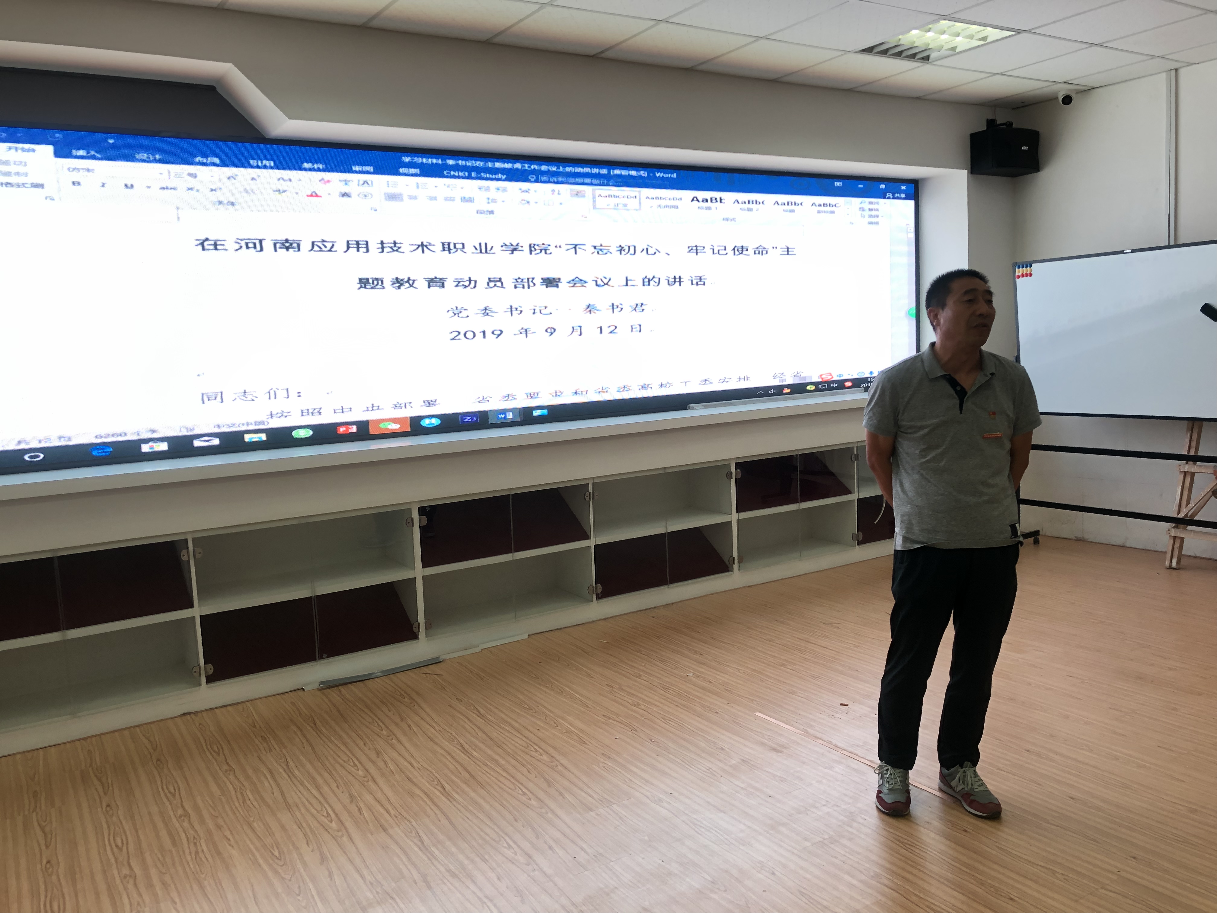 2019年9月17日,星空XK体育党总支组织教工、学生支部在实训楼创意馆召开召开“不忘初心、牢记使命”主题教育工作动员会。会议中,两个支部按照总支动员工作要求,分别按照学习文件、学习讲话精神和活动动员三个步骤开展。会上,支部书记领学了《习近平在“不忘初心、牢记使命”主题教育工作会议上的讲话》、《星空XK体育官方网站“不忘初心、牢记使命”主题教育工作实施方案》、校党委书记秦书君同志《在星空XK体育官方网站“不忘初心、牢记使命”主题教育动员部署会议上的讲话》,阐述了全党加强“不忘初心、牢记使命”主题教育的重要意义。最后通过对文件的分析,明确了党员干部在教育工作中要实现的目标,将全体党员思想统一到“守初心、担使命,找差距、抓落实”的总要求上来。