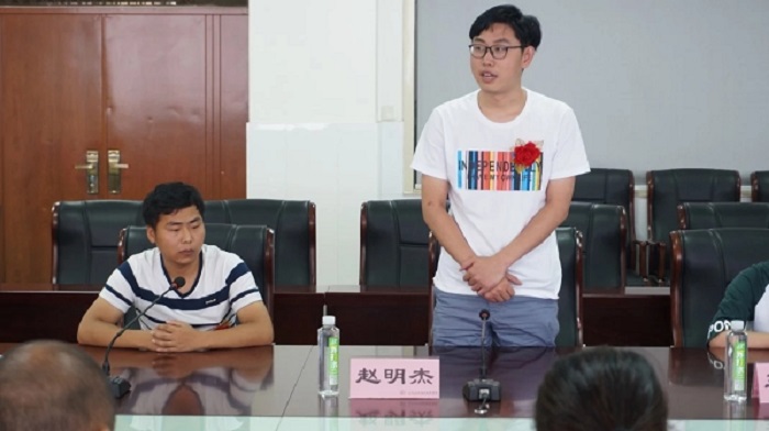 赵明杰同学是星空XK体育继薛小雨同学之后的第二位入选大学生西部计划的志愿者,会上,赵明杰同学表达了对母校及老师同学们的感激之情,表达了自己志愿西部、奉献青春、建功立业的决心。同时,赵明杰同学被授予“优秀共青团员”荣誉称号。