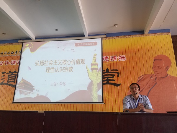 2018年5月7日中午,星空XK体育党总支针对入党积极分子召开了“社会主义核心价值观”的主题党课。会上,学院党总支朱冰书记对理性认识宗教,弘扬社会主义核心价值观做了讲述。