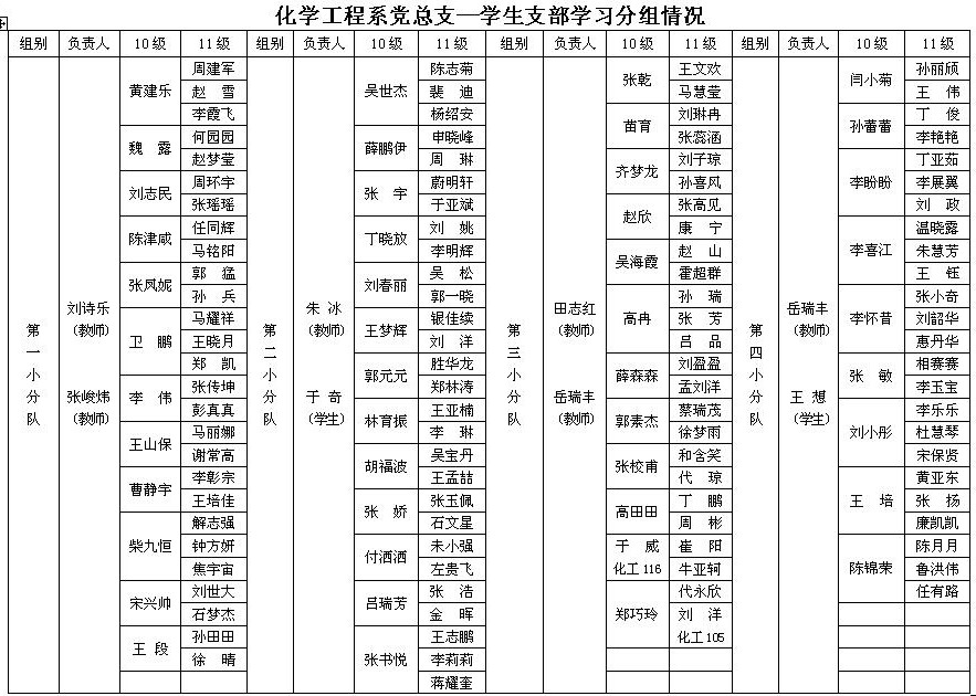 备注:11级写入党申请同学名单随申请人数变化动态更新,续编入组。