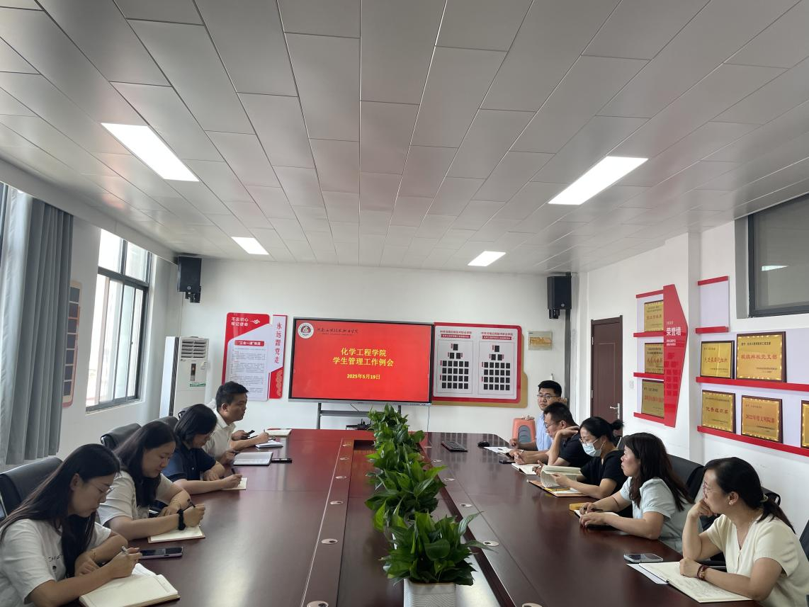 2025年5月19日,星空XK体育于A512召开学生管理工作例会,会议由党总支副书记常惟诚主持,党总支书记陈永惠及全体专兼职辅导员参加会议。