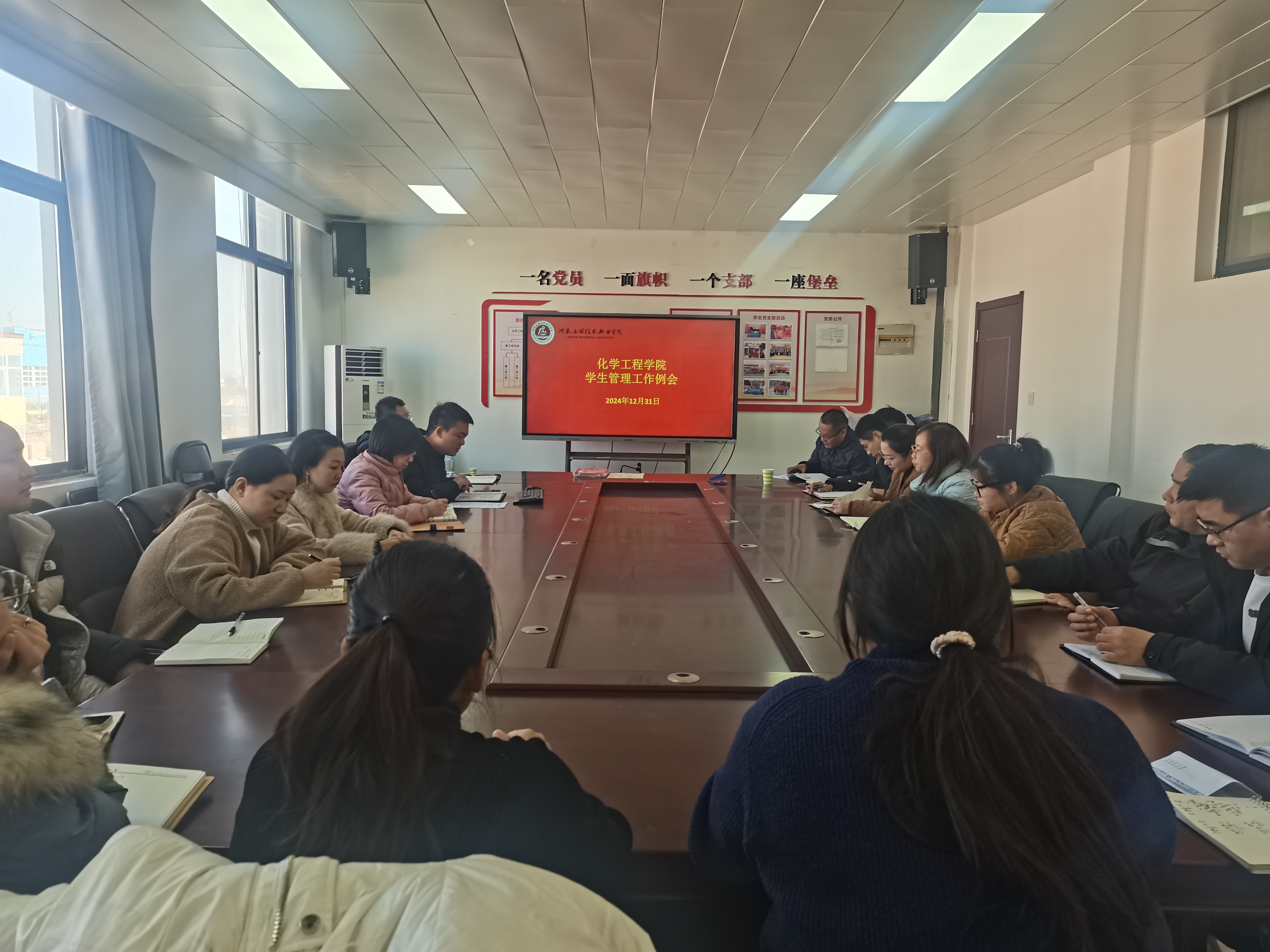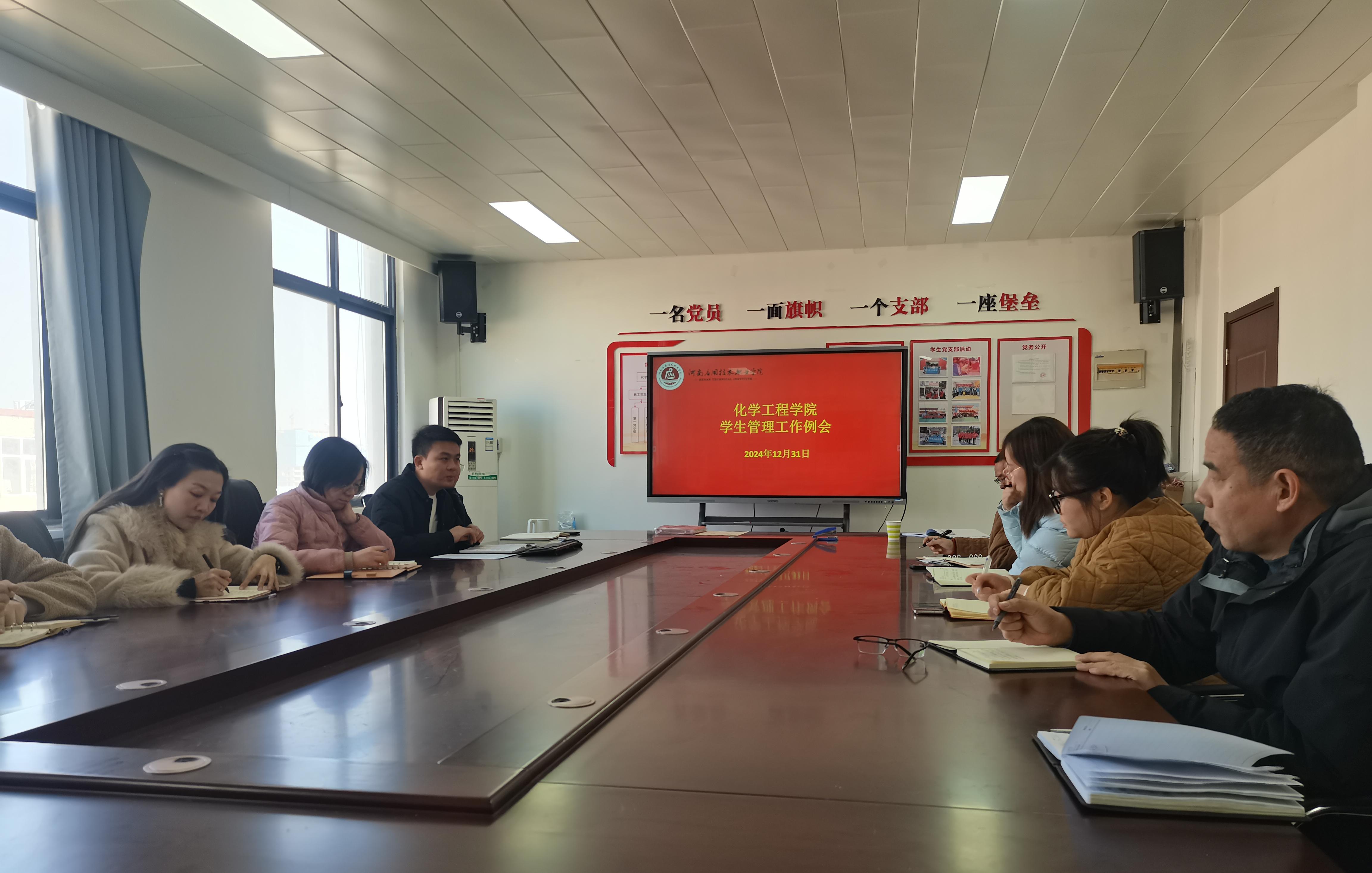 为了进一步夯实辅导员队伍建设,全面总结学院学生管理工作,星空XK体育于2024年12月31日中午在A512召开学生管理工作例会。学院党总支书记陈永惠、党总支副书记常惟诚以及全体专兼职辅导员参加会议,会议由常惟诚主持。