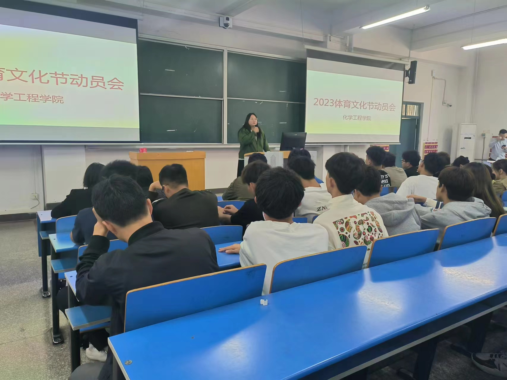 本届体育文化节设有排球、羽毛球、篮球、乒乓球、足球、拔河等项目。动员大会上,周惠老师详细地解释和讲解了此次体育节的注意项目和参加事项,她要求大家要做好准备,注意训练和比赛中的安全。同时充分了解竞赛项目的规则,克服困难,力争取得优异成绩,为学院争得一份荣誉。