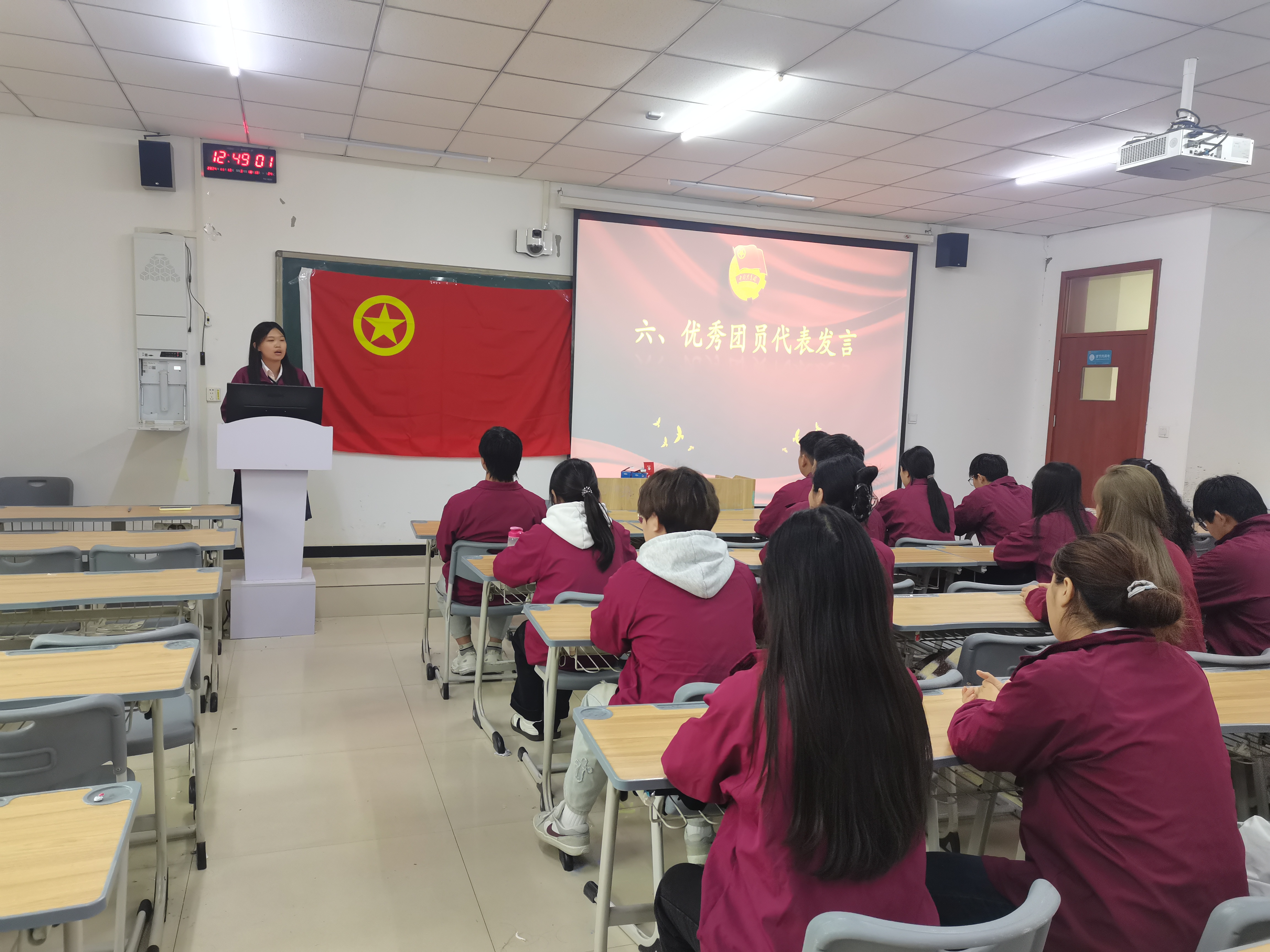 宣誓后,新团员代表牛博远发言,向团组织表达他们加入团组织的初衷和决心,将时刻铭记自己共青团员的身份,严格要求自己。