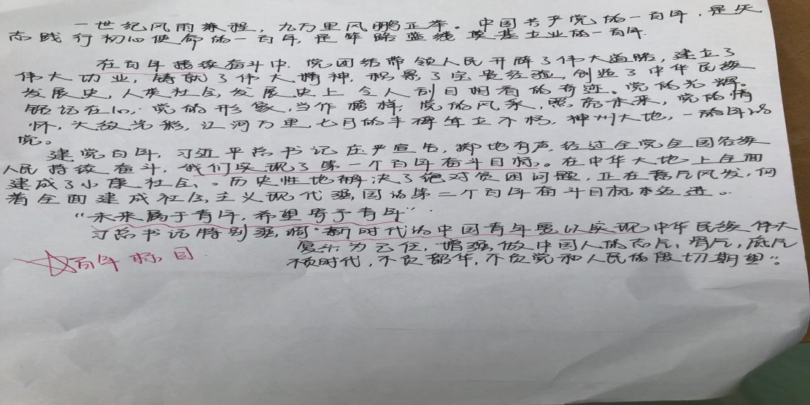 在这建党100周年的时间里,中国有了全新的变化,我们奋斗了百年,奋斗创造历史,实干成就未来。有中国共产党的坚强领导,有全国中华人民的紧密团结,全面建成社会主义现代化强国的日标定能继实现,中华民族伟大安兴的中国梦一定能实现!