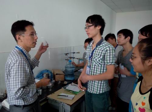 为进一步丰富我系第二课堂学生的课余生活,强化第二课堂学生对分析仪器的使用,2014年9月26日上午我系邀请应用化学系副教授夏朝辉老师对第二课堂学生在PH计、浊度计、电导率测试仪等分析仪器调试、使用和维护方面给予技术指导。